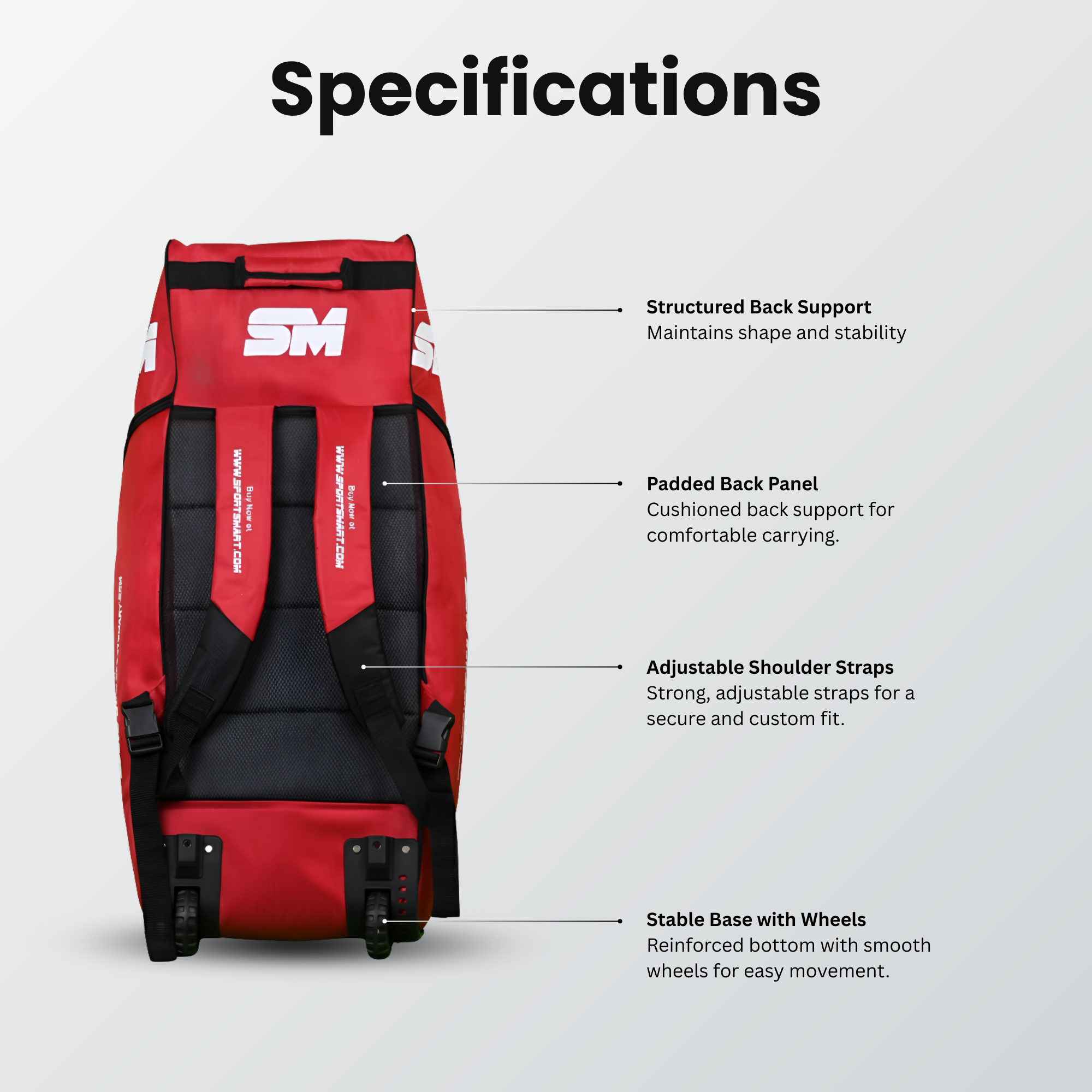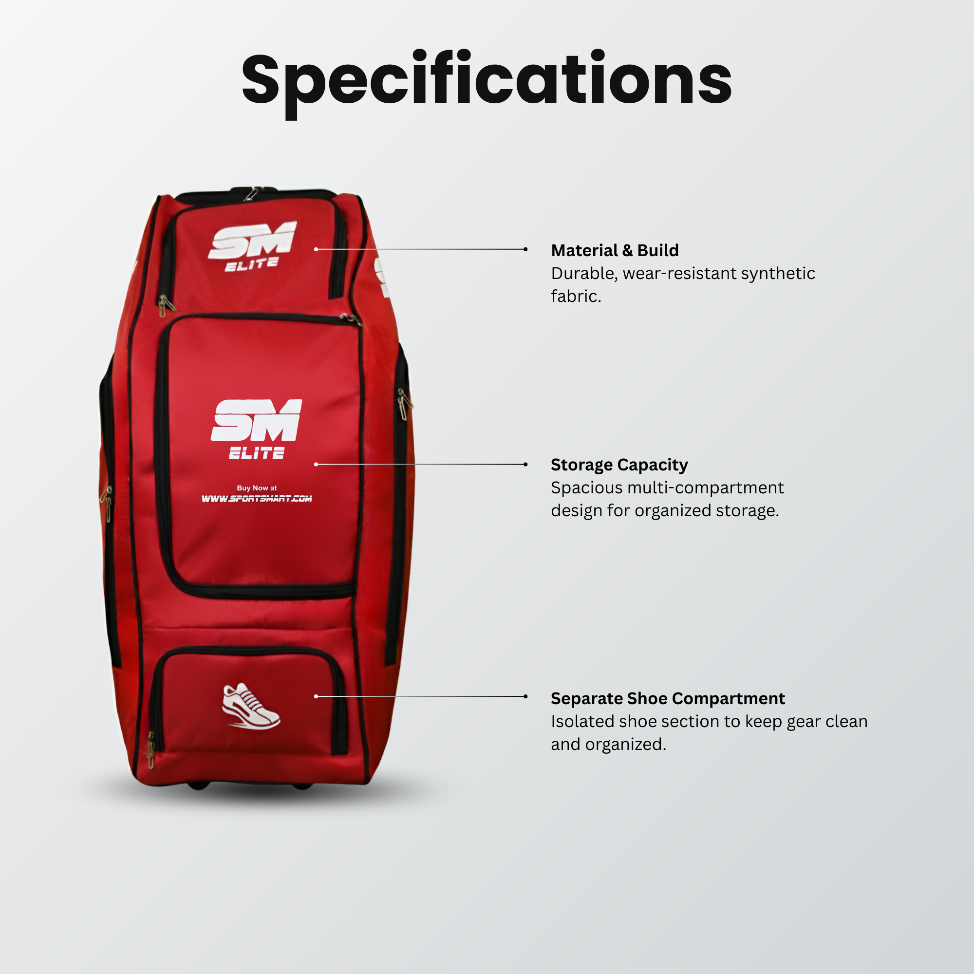 • Spacious multi-compartment layout for full cricket gear